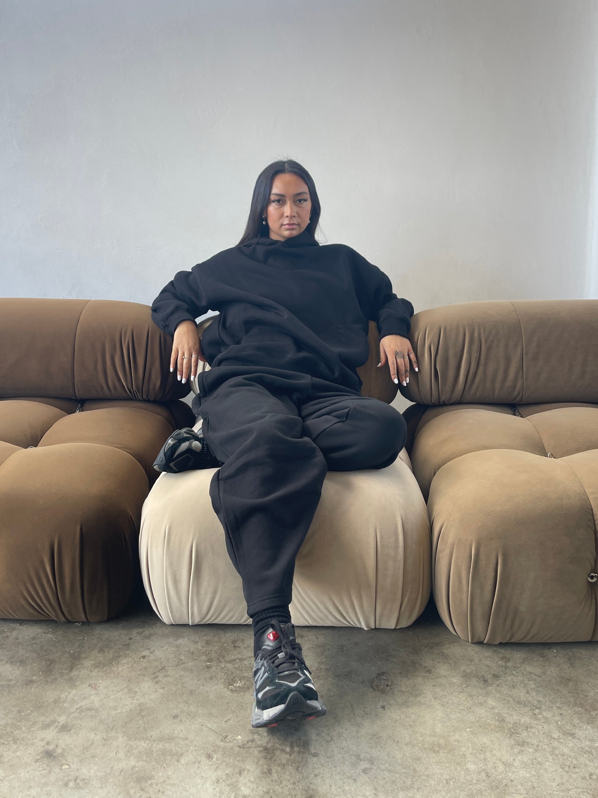 Model is wearing size XL for the oversized look.
